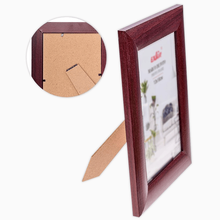 Este marco ofrece una combinación equilibrada entre diseño y funcionalidad. Su acabado tipo madera brinda una alternativa decorativa atractiva y accesible, ideal para resaltar tus fotografías sin perder elegancia.